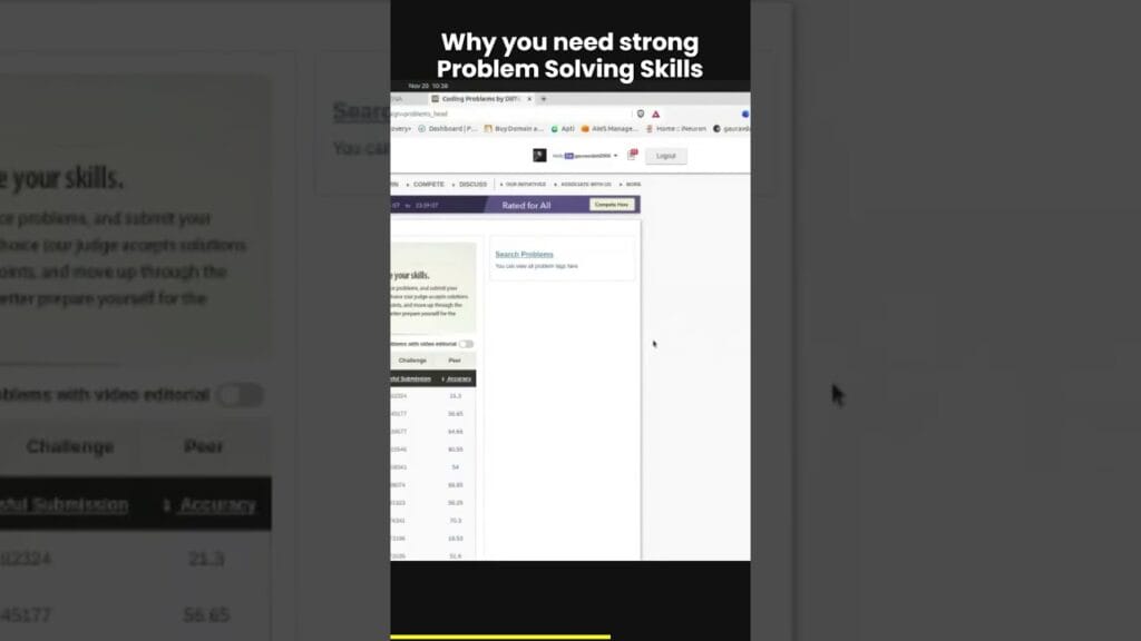 Stand Out to Employers: The Importance of Improving Your Public Profile for Hiring importance of competitive programming String Problem Solving is just as important #shorts Why do we need to improve problem solving skills and what recruiters look for in freshers #shorts Learn data structure and algorithms Part 2 #dsa How to learn Data Structures and Algorithm DSA easily on your own #shorts #dsa Boost Your Rank in Competitive Programming with these Code Optimization techniques How Ranking works in CodeChef #shorts #competitiveprogramming1011121314Search Search for: About This SiteAao Code Kare is a community of learners who thrive by sharing knowledge and make connections by sharing job posts, resources and memes.Introduce yourself on our WhatsApp Community click here