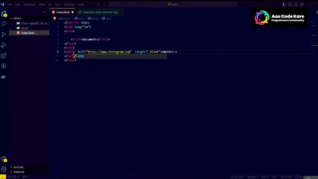 Navigating VS Code and Install Live Server HTML Abbreviation Tag [abbr] HTML Basics – Syntax and Tags Introduction to web development – HTML Basics Top 5 Interview Questions asked for HTML | Interview Questions | Aao Code Kare Web dev [Segregated/edited] tutorial coming soon #coding #learnwebdev #webdevelopment #shorts Web Development in 20 Days – Day 20 [Raw] | AaoCodeKare | Drawing Board and Hoverboard23456Search Search for: About This SiteAao Code Kare is a community of learners who thrive by sharing knowledge and make connections by sharing job posts, resources and memes.Introduce yourself on our WhatsApp Community click here